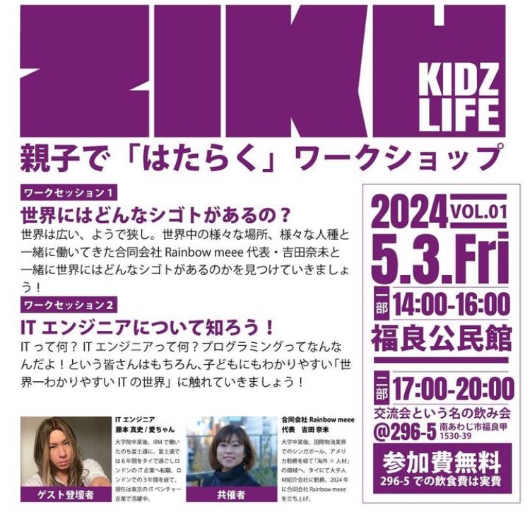 5月3日(日)に淡路島の南に位置する福良にて、親子向けのキャリア教育ワークショップを実施しました。